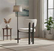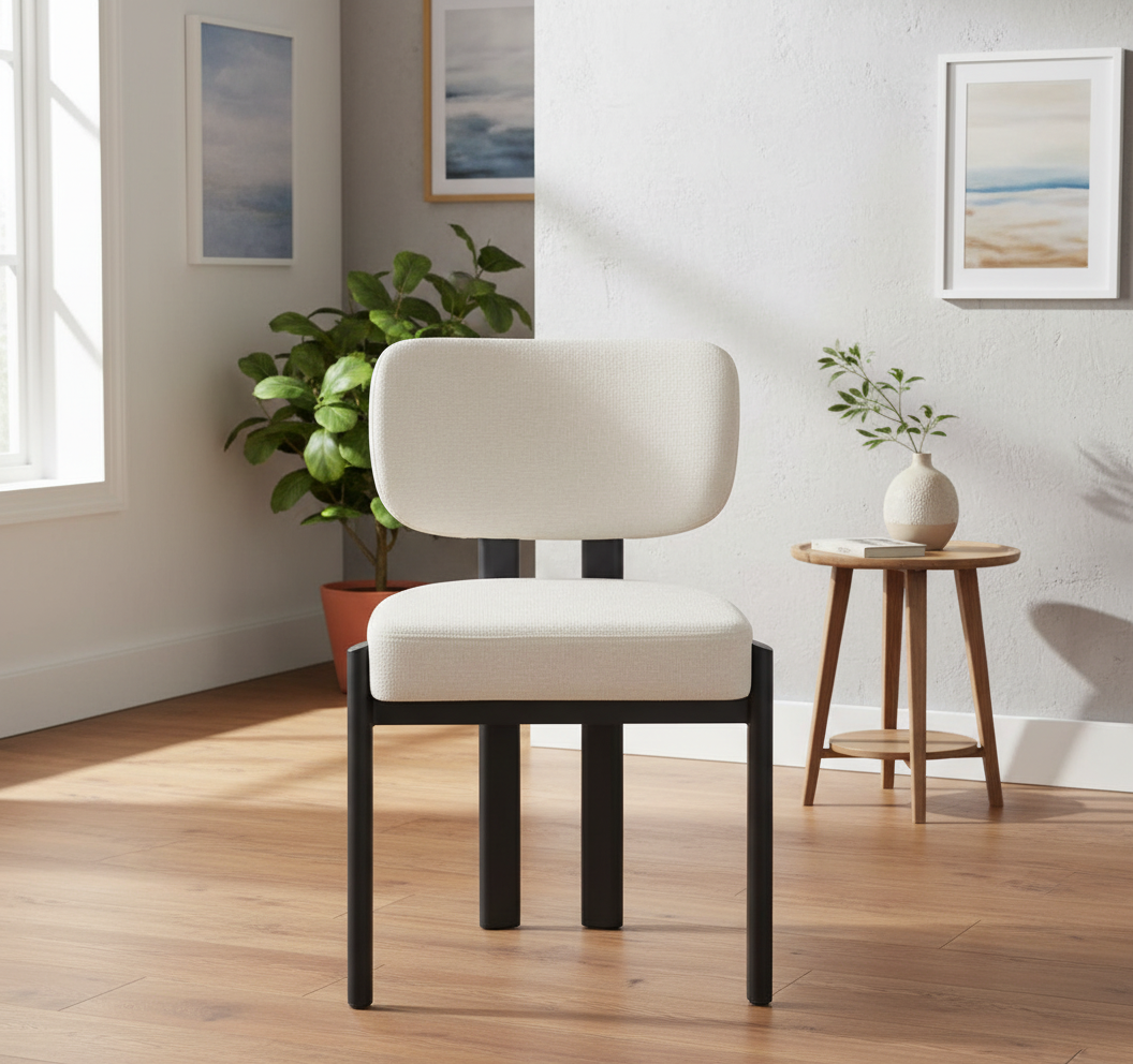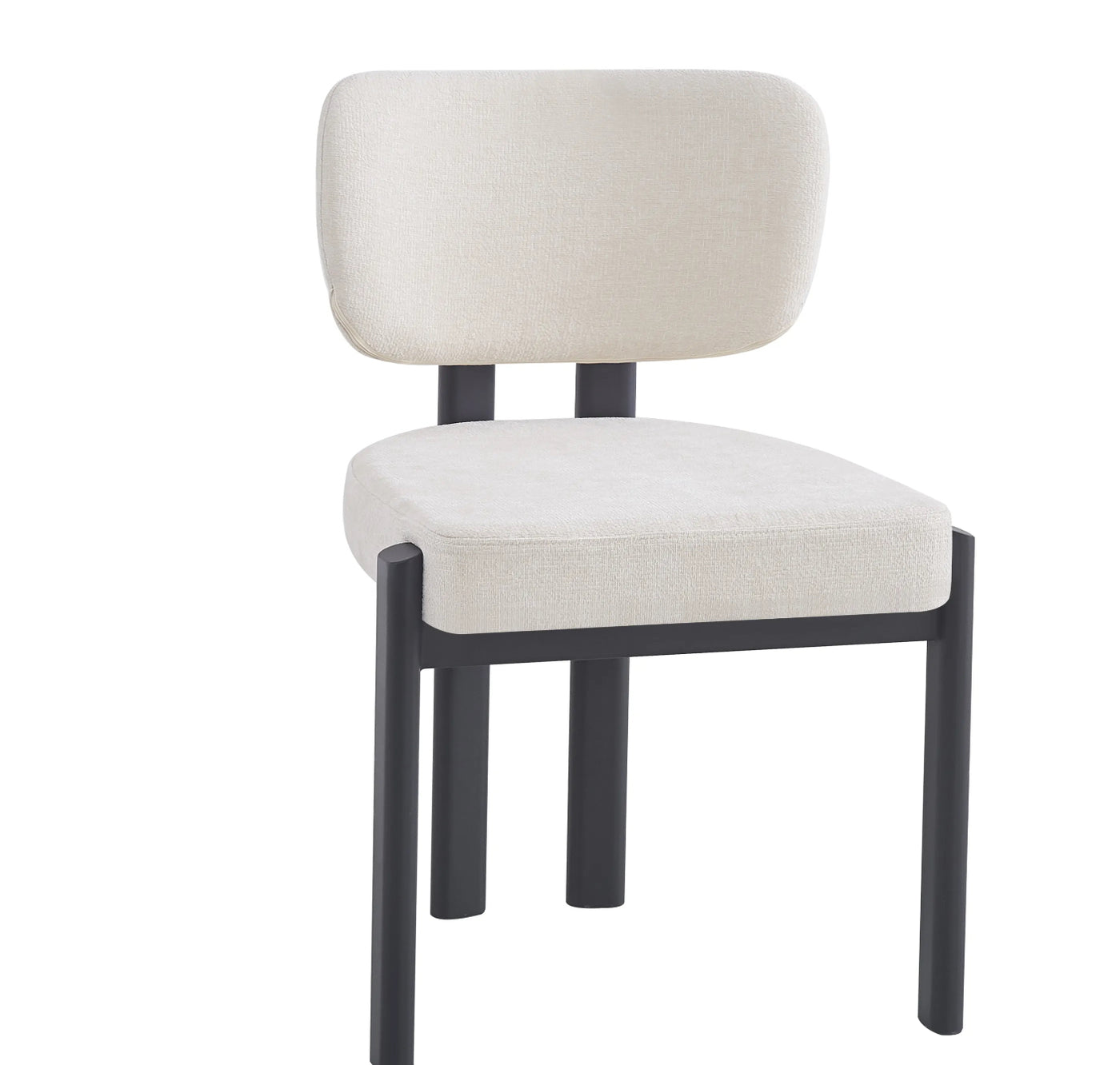 CHAISE ERM-BAGUETTE PIED METAL NOIR TISSUS SERGE CHENILLE BEIGE
