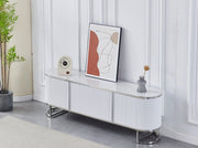 MEUBLE TV GDM ESMEE ARGENT CERAMIQUE MARBRE BLANC GRIS