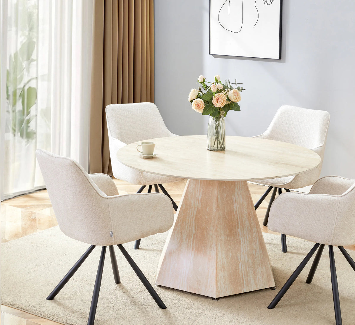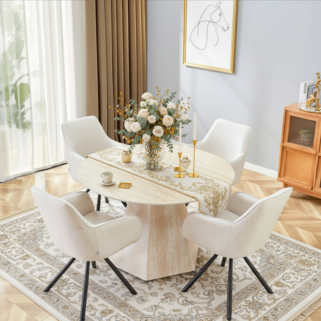 Pied effet travertin, Plateau en céramique travertin mat, Dimension de la table : 120x76 cm