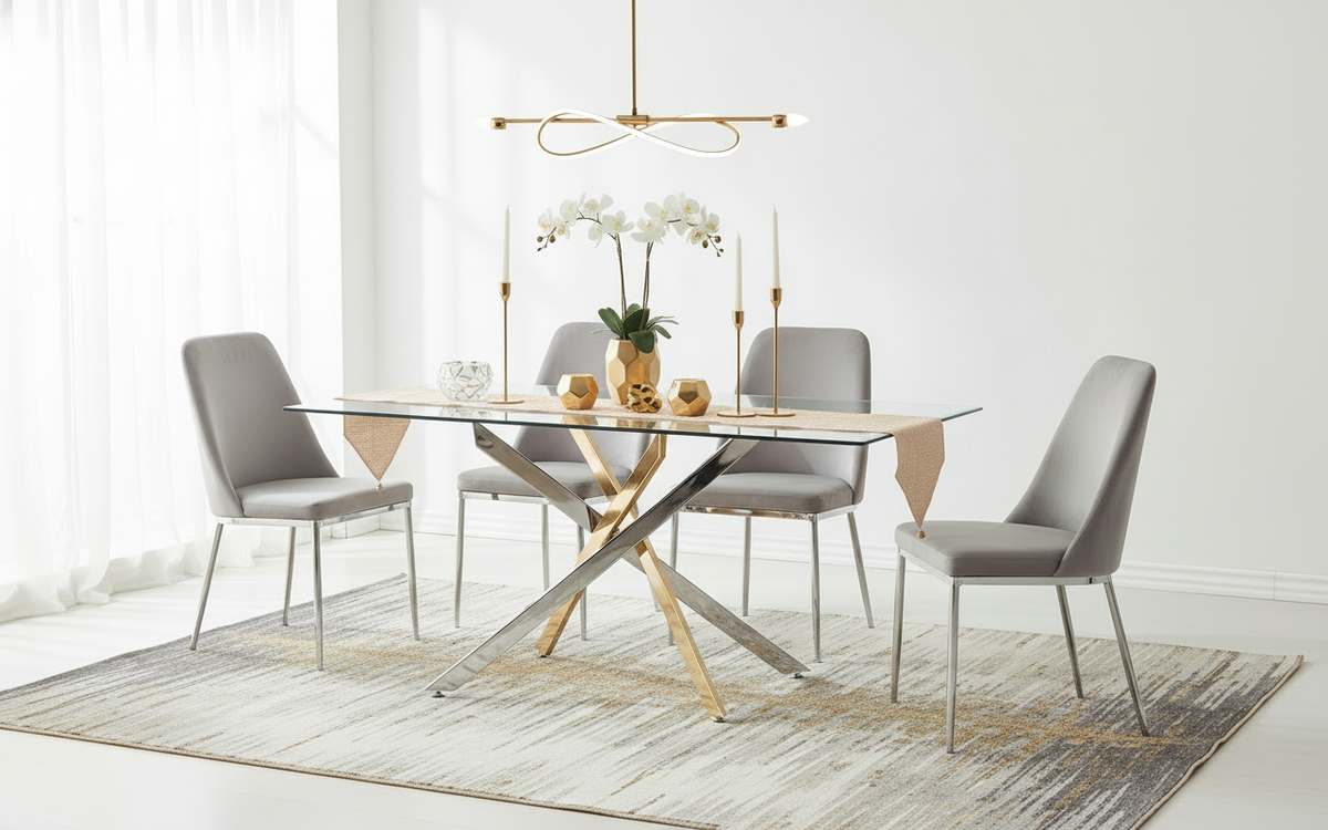 Table à manger ERM-Jessica gold chromée plateau de verre transparent - 180x90 cm