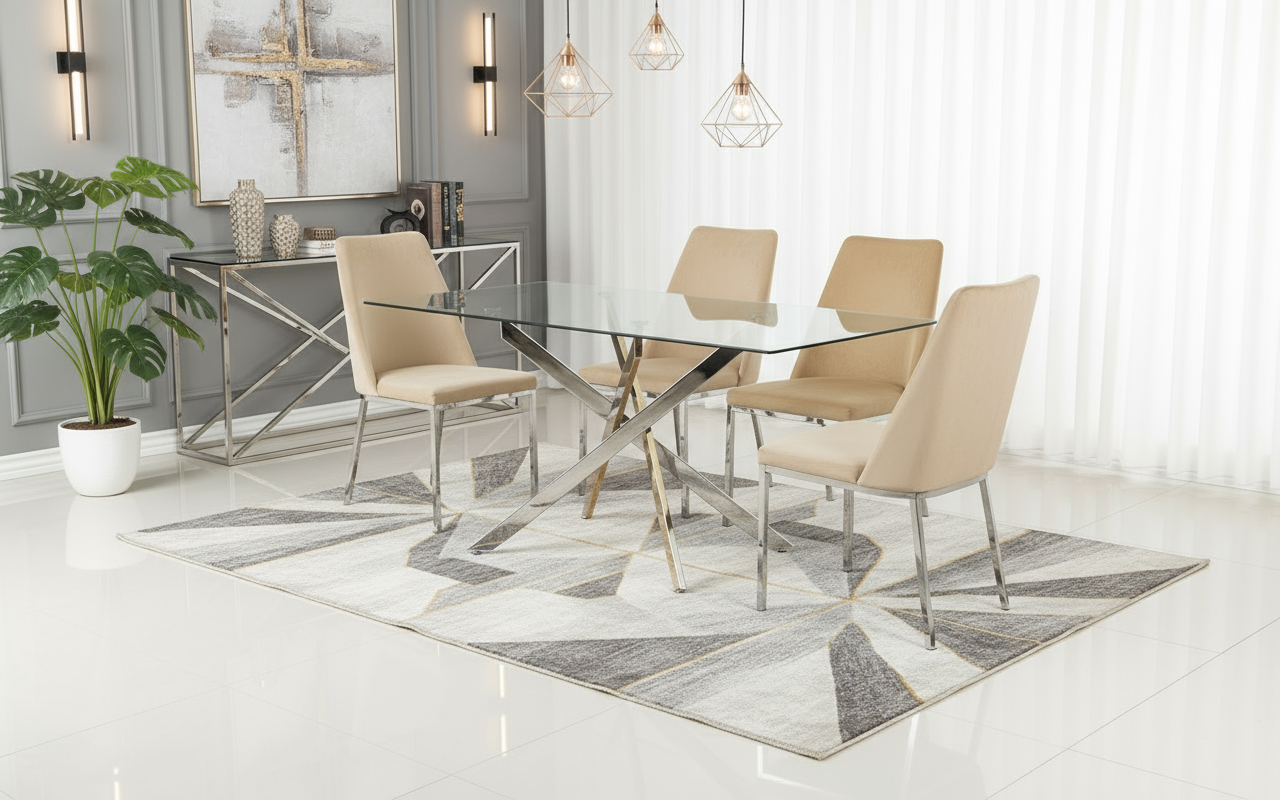Table à manger ERM-Jessica gold chromée plateau de verre transparent