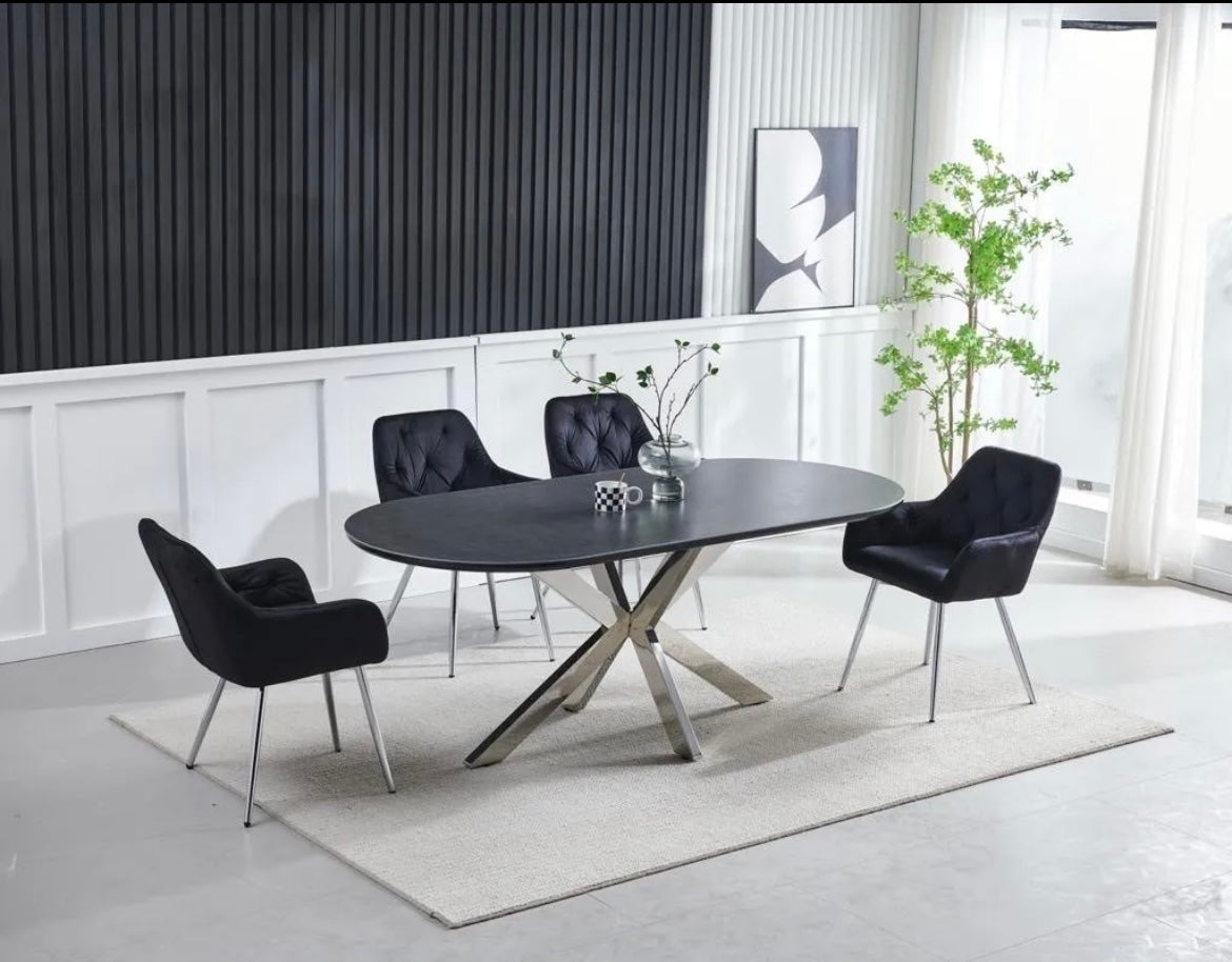 TABLE A MANGER CERAMIQUE OPHELIA CHROME Plateau en céramique: - Anti-rayure- Forte résistance à la chaleur