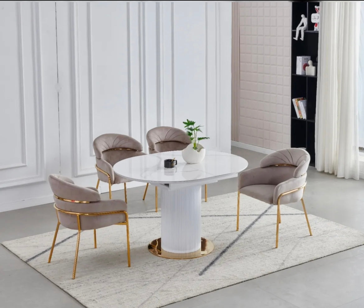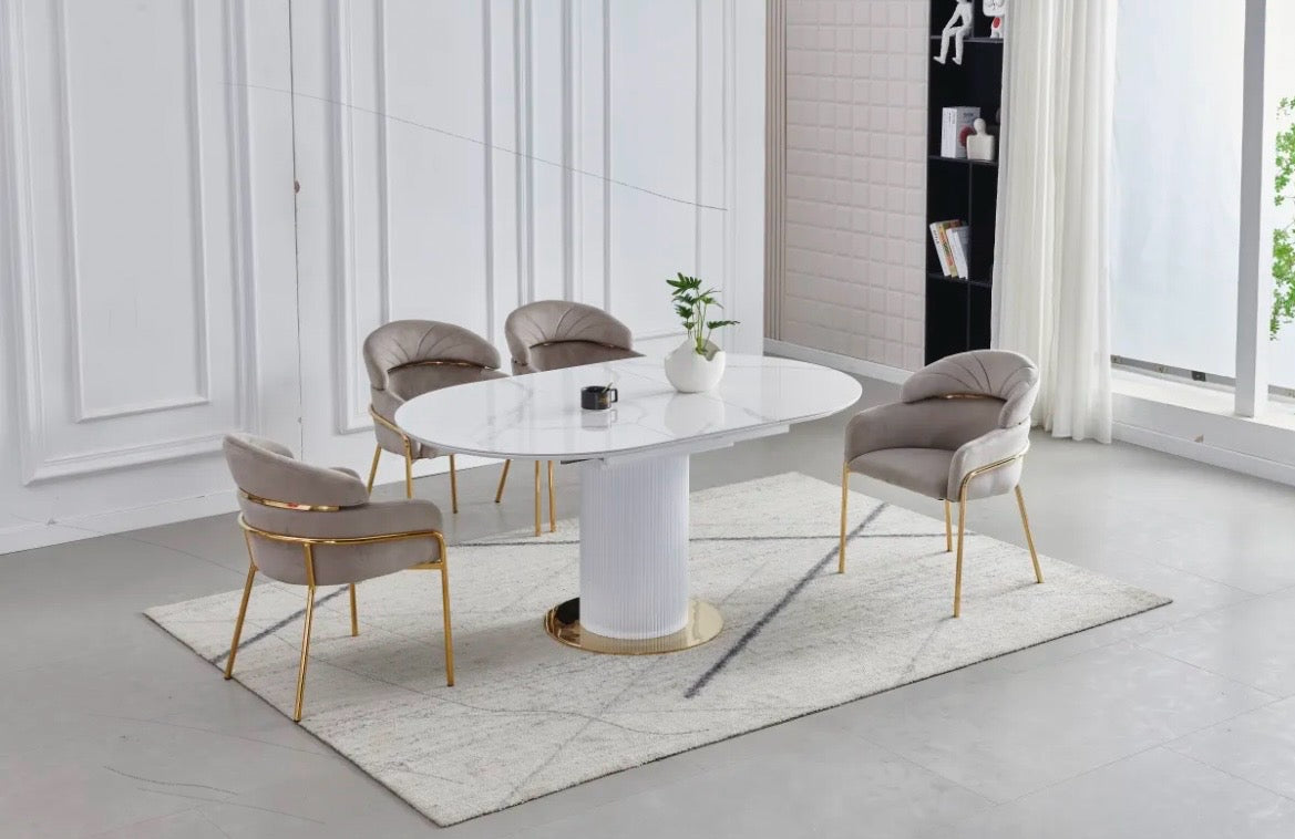 TABLE A MANGER RALLONGE CERAMIQUE SOFIA PIED DORÉ