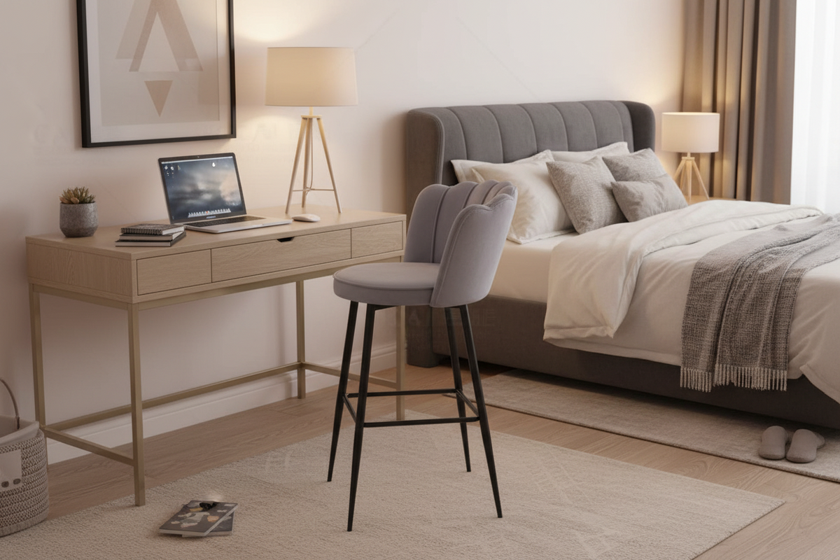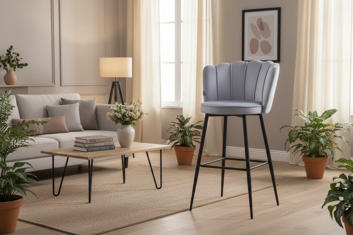 TABOURET DE BAR NYMPHEA METAL NOIR VELOURS SILVER HAUTEUR 65cm