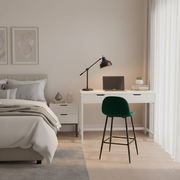 TABOURET DE BAR SCANDINAVE PIED METAL NOIR VELOURS VERT SAPIN
