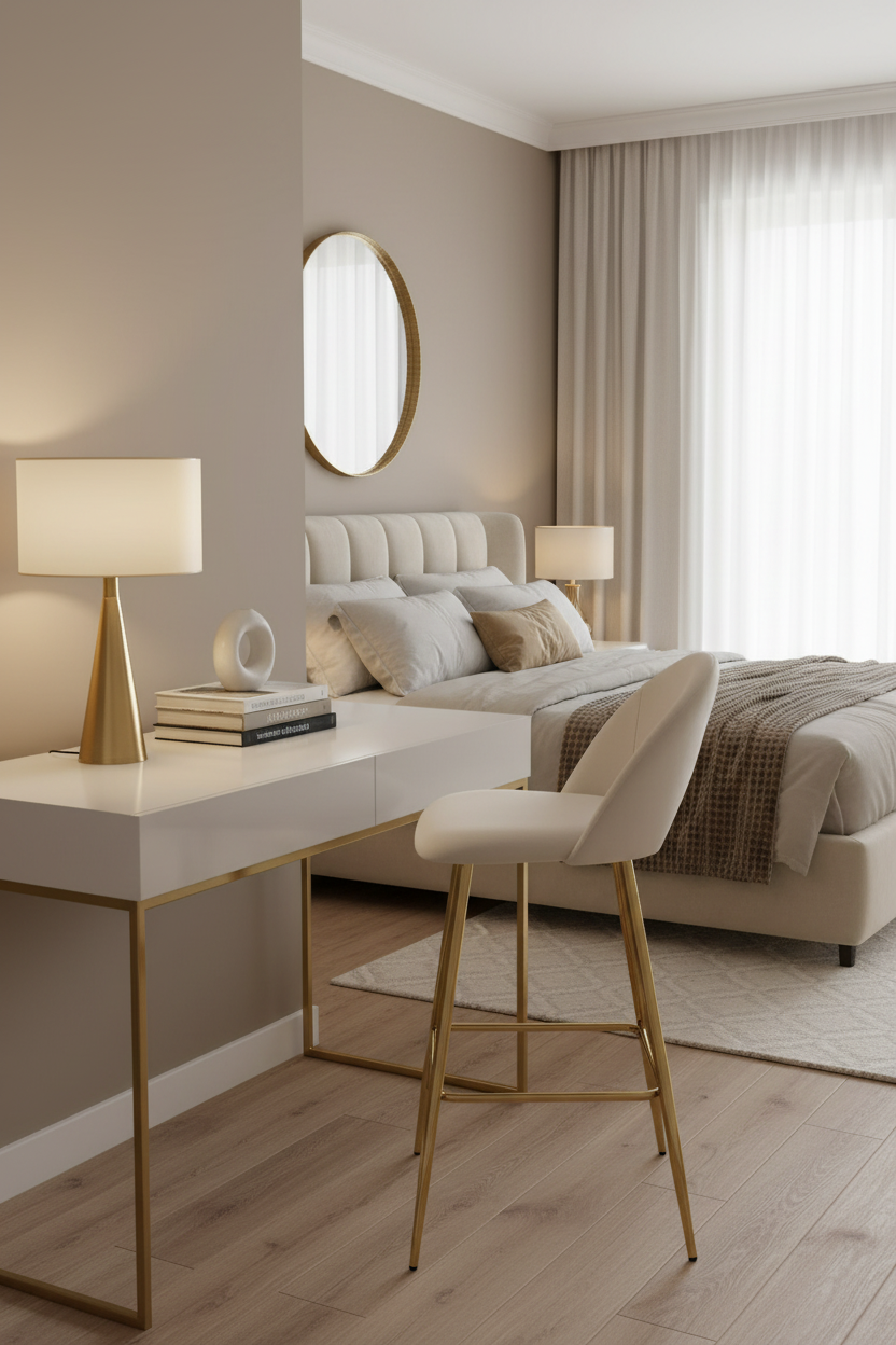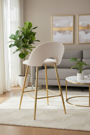 TABOURET DE BAR TEDDY PIED GOLD VELOURS BEIGE