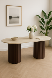 TABLE A MANGER KEYSHA PIED TRAVERTIN PLATEAU CERAMIQUE TRAVERTIN MAT 180x90x75 CM