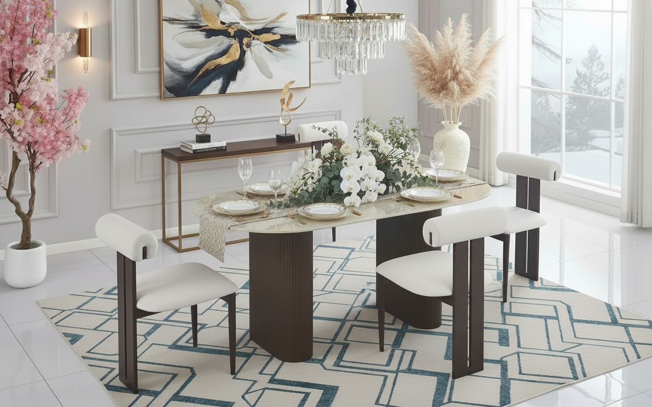 Table à manger ERM-Roxy effet travertin brillant 180x90cm